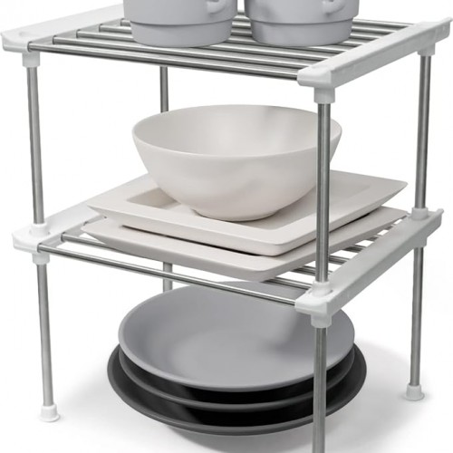 carrotez Cabinet Organizer Shelf, Set of 2 Stackable Kitchen Counter Shelves, Kitchen Cabinet Organizers and Storage, Pantry Storage Shelf Organizer, 15.7 x 7.8 x 6.1 – Black