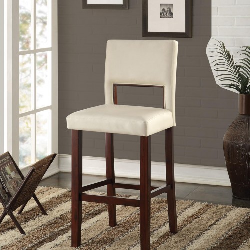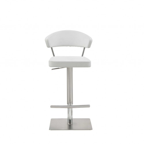 White Faux Leather Armless Swivel Bar Stool with Brushed Stainless Steel Base