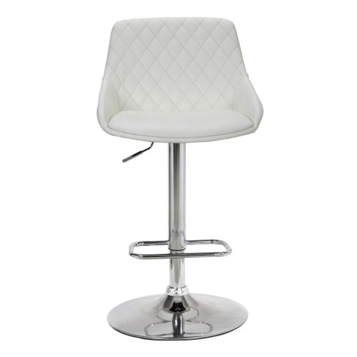 White Faux Leather and Chrome Back Tufted Adjustable Bar Stool