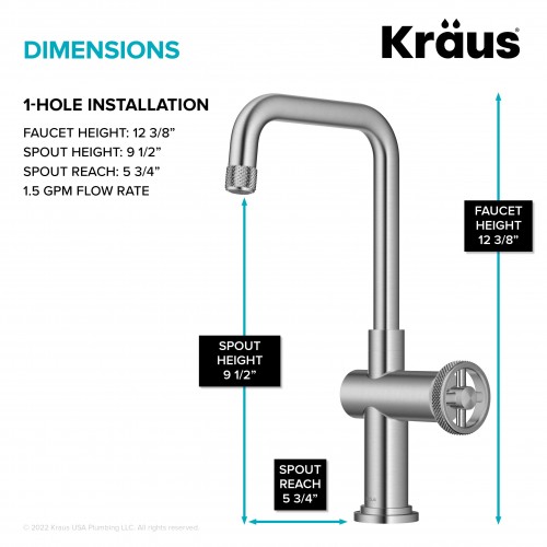 KRAUS Urbix Industrial Single Handle Kitchen Bar Faucet in Stainless