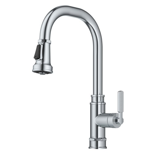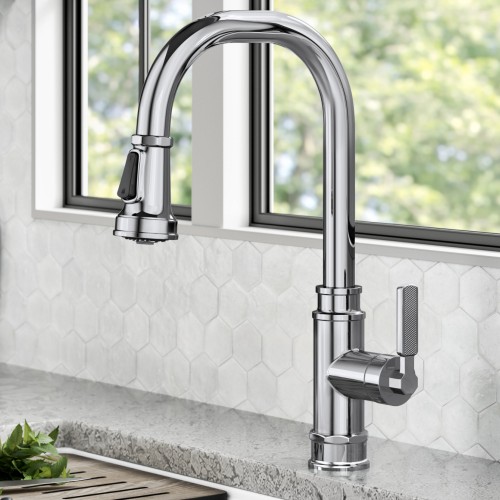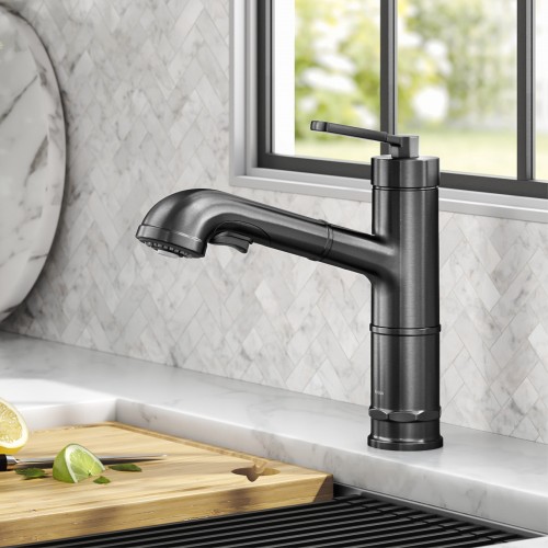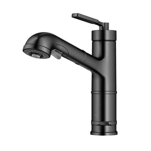 KRAUS Allyn Industrial Pull-Out Single Handle Kitchen Faucet in Black Stainless