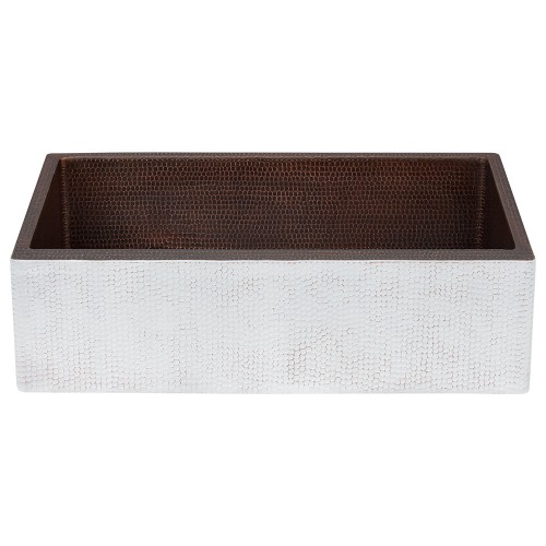 33″ Hammered Copper Apron Front Single Basin Kitchen Sink in Glazed White