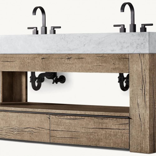 Dawn 60″ Bohemian Vanity Double Sink & White Marble Top AACCS-6001