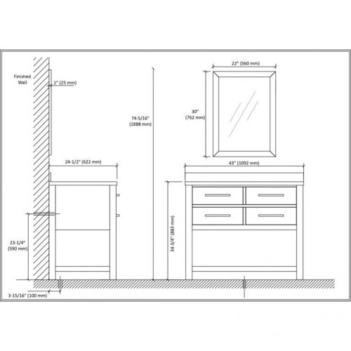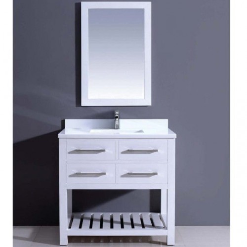 Dawn 36″Milan Vanity Single Sink & White Marble Top & Mirror AAMS3601