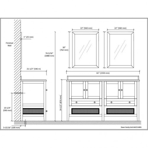Dawn 60″ Milan Vanity Double Sink & White Marble Top & Mirrors AAMS6001