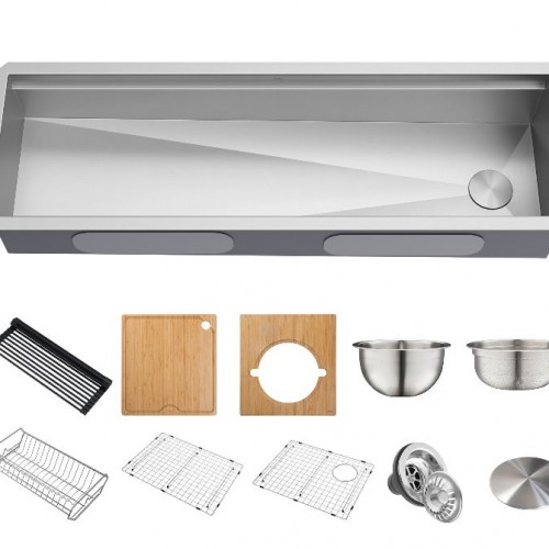 KRAUS Kore Dual Tier 57″ Undermount Workstation 16 Gauge Single Bowl Kitchen Sink