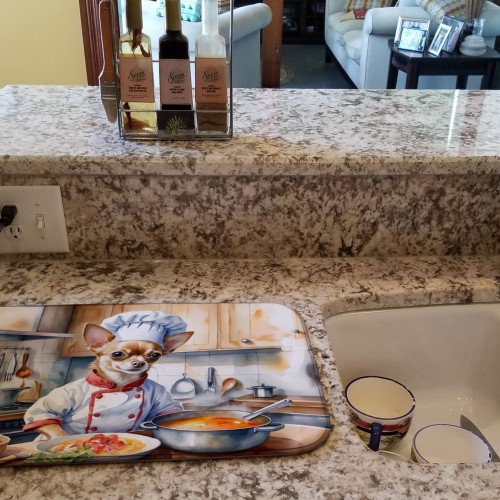 Chihuahua The Chef Dish Drying Mat Absorbent Dish Drying Mat Pad for Kitchen Counter Dish Drainer Mat for Countertop, 14 x 21″, Multicolor Default