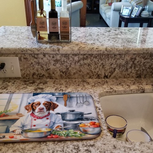 Brittany Spaniel The Chef Dish Drying Mat Absorbent Dish Drying Mat Pad for Kitchen Counter Dish Drainer Mat for Countertop, 14 x 21″, Multicolor Default