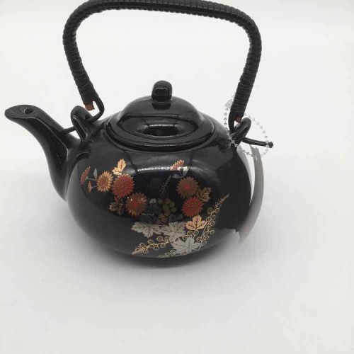 2 Piece Black/Gold Ceramic Teapot