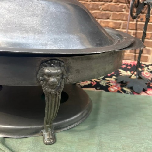 Large Silver Serving Platter With Warmer Plate, Lid, and Lion Details