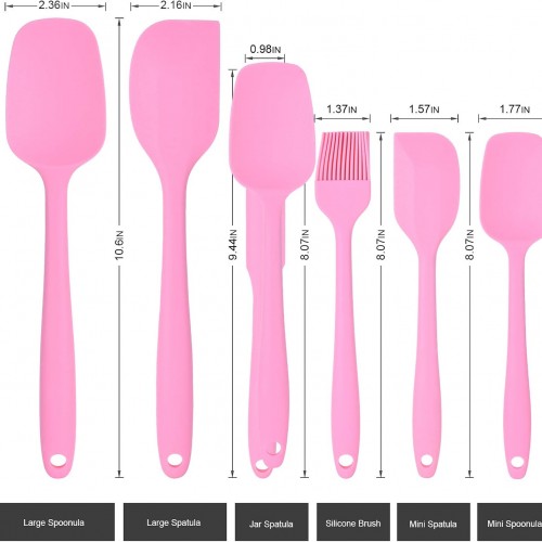 Heat Resistant Silicone Spatulas Set Food Grade Silicone Seamless One Piece Design BPA-Free,Non-Stick,Dishwasher Safe,Cooking and Mixing Set of 6PCS-pink(pink)