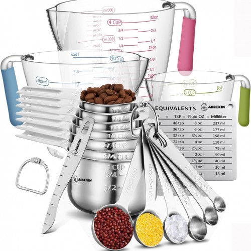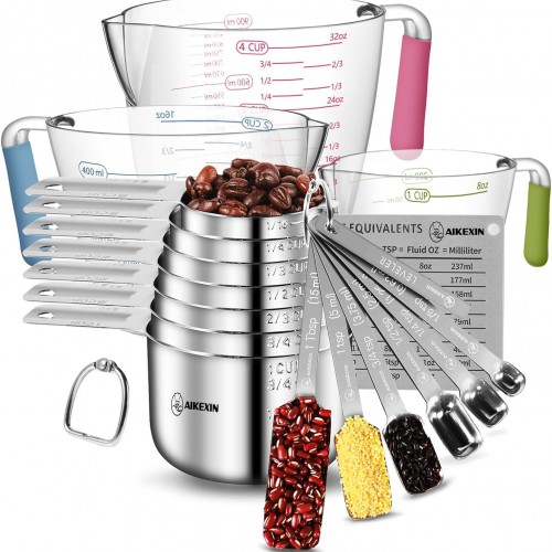 Measuring Cups and Spoons Set of 20 – Stackable Stainless Steel Measuring Cups Spoons & Plastic Measuring Cup for Dry and Liquid Ingredients, Cooking & Baking Kitchen Gadgets