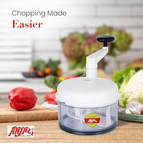 Anjali Manual Food Processor – Hand Crank Vegetable Chopper with Stainless Steel Blades | Multi-Purpose Salad Spinner, Mixer & Slicer | Compact & Easy to Use Kitchen Tool