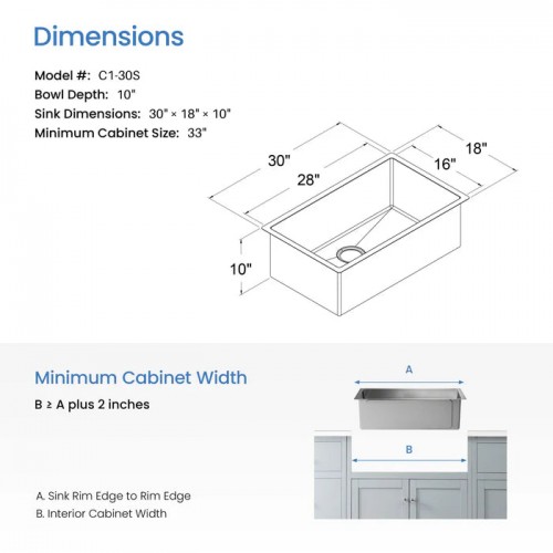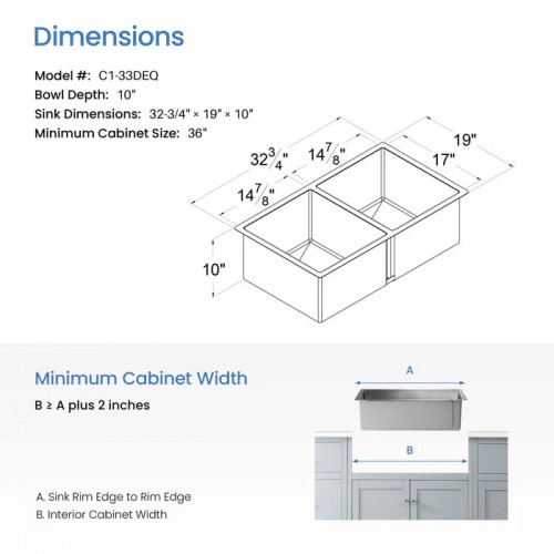 Casa Fixtures – Kitchen Sinks – 33″ Top-Mount Workstation Double Bowl Quartz Kitchen Sink (C4-33TDT)