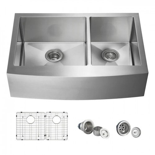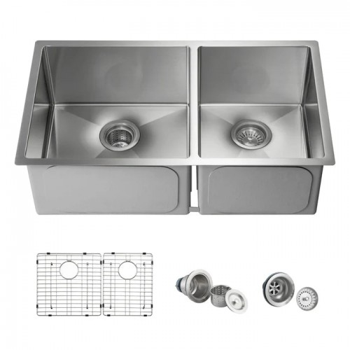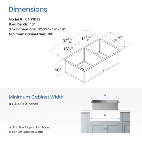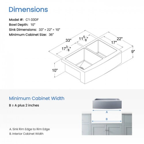 Casa Fixtures – Kitchen Sinks – 32″ Fireclay Double Bowl Drop-In/Undermount Kitchen Sink (C2-32D)