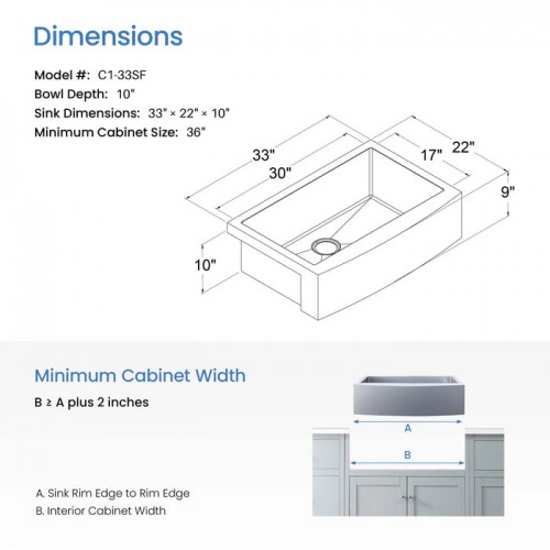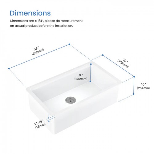 Casa Fixtures – Kitchen Sinks – 33″ Fireclay Drop-In/Undermount Workstation Sink (C2-33ST)