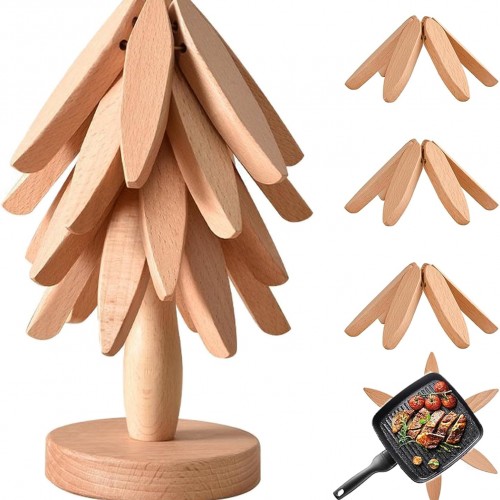 Premium Wooden Trivets Set of 4,Natural Wood Heat Resistant Coasters for Hot Pots, Pans, and Dishes – Eco-Friendly Kitchen Accessories for Dining Table, Countertop, and Stovetop Protection