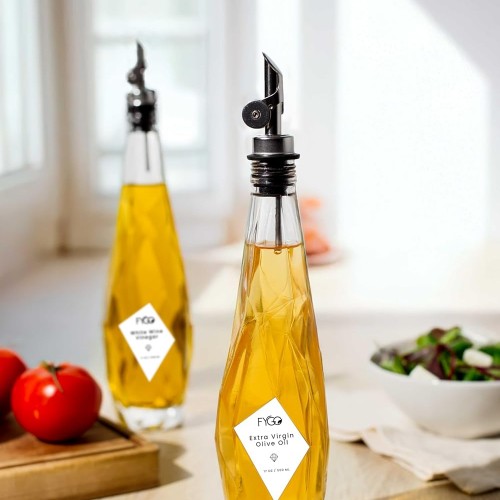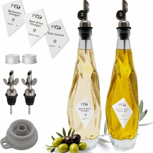 FYGO Diamond Lux Olive Oil Bottle Dispenser – Olive Oil Container- Oil and Vinegar Dispenser Set with Pourer and Funnel – Glass Dispenser Bottle for Kitchen – 500ml – Set of 2