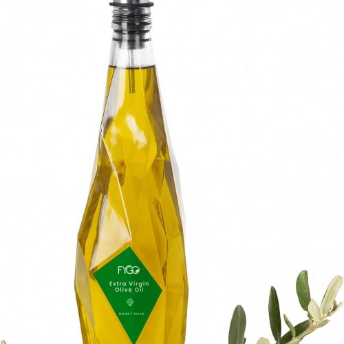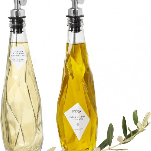 FYGO Diamond Lux Olive Oil Bottle Dispenser – Oil and Vinegar Container Set With Pourer and Funnel – Glass Bottle for Kitchen – 350ml – Set of 2