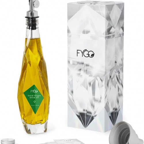 FYGO Diamond Lux Olive Oil Bottle Dispenser – 500ml Glass Container With Pourer and Funnel for Kitchen – Oil and Vinegar Set