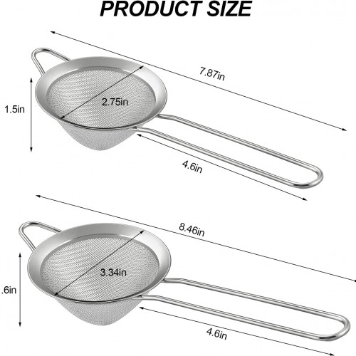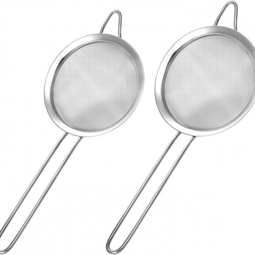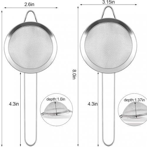 2 Pack Fine Mesh Strainer, Small Stainless Steel Sieves with Handles, for Steeping Loose Leaf Tea, Straining Cocktail, Juice and Sifting Flour, Powdered Sugar (2pcs)