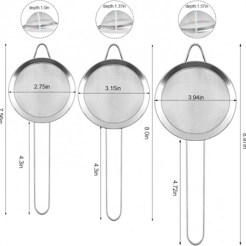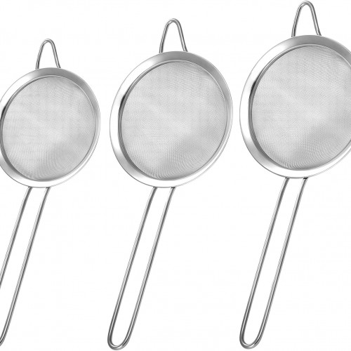 3 Pack Fine Mesh Strainer, Small Stainless Steel Sieves with Handles, for Steeping Loose Leaf Tea, Straining Cocktail, Juice and Sifting Flour, Powdered Sugar