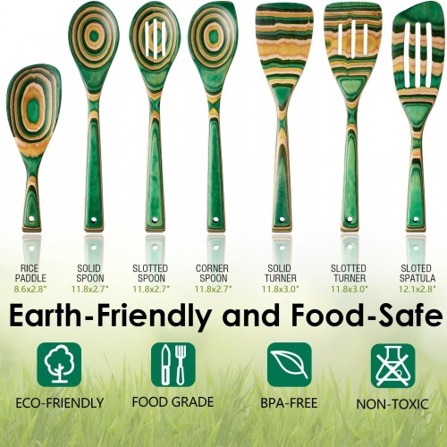 Kitchen Pakkawood Wooden Spoons for Cooking – 7-Piece Kitchen Utensil Set with Spatula, Corner Spoon, Rice Paddle – Nonstick Safe Durable Wooden Cooking Tools for Home Kitchen by Howhong (Oasis)