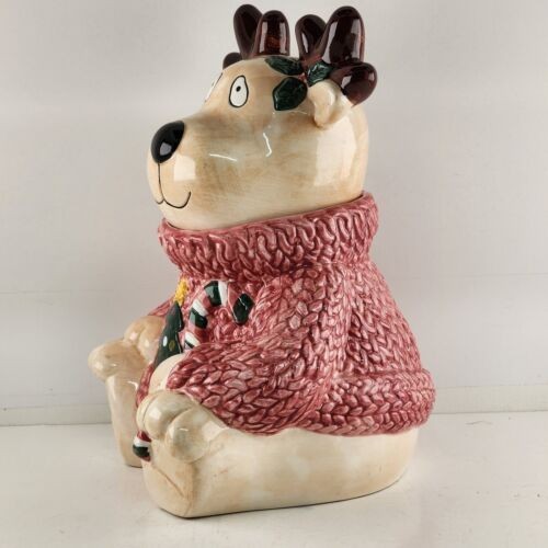 Reindeer Christmas Cookie Jar Hand Decorated Vintage 1996 Jay Imports 12″ Tall