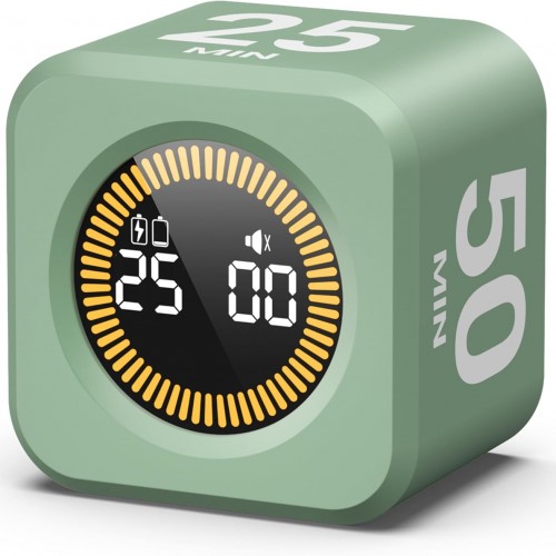 KADAMS Pomodoro Cube Timer Productivity Visual Timer – 5/10/25/50 Min Rotating Countdown (Green)
