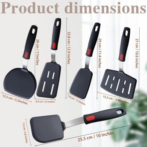 Silicone Spatula Turner, 5-Pack Spatulas Silicone Set for Nonstick Cookware, 600°F Heat Resistant Kitchen Cooking Utensils Set for Egg, Pancake Dishwasher Safe