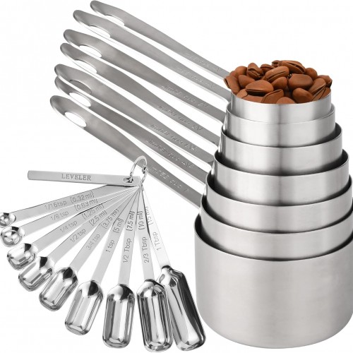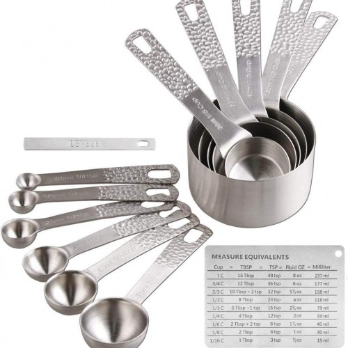 Copper Measuring Cups and Spoons – 17 Piece Set, 7 Cups and 9 Spoons with 1 Leveler for Kitchen