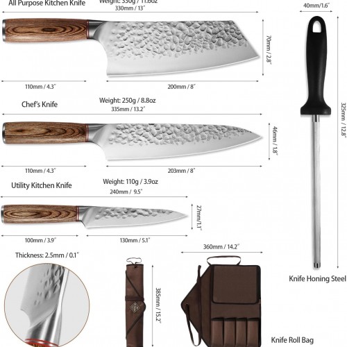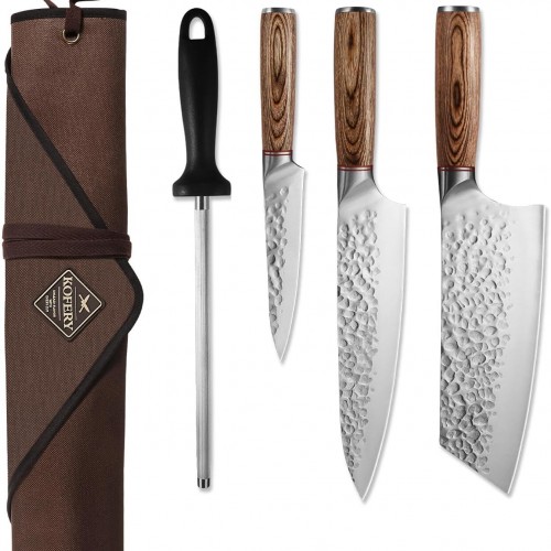 KOFERY 5PCS Chef and BBQ Knife Set with Roll Bag, High Carbon Stainless Steel Knives for Precise Cooking, Outdoor Meat Cutting(Include Sharpening Steel)