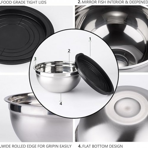Mixing Bowls with Lids set – 25 PCS Stainless Steel Nesting Khaki Mixing Bowls Set for Baking,Mixing,Serving & Prepping,Size 5, 3.7, 2.8, 2.3, 1.7, 1.1, 0.7QT, 11 Cooking Utensils