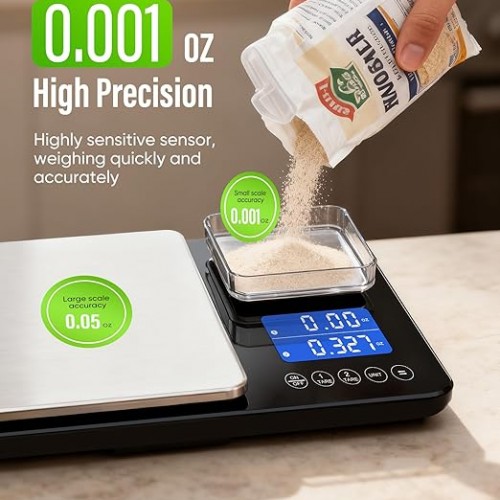 Digital Dual Platform Kitchen Scale, 33 lb Large & 1.1 lb Mini Food Scale with Dual-Line LCD Display, Stainless Steel, High Precision for Baking, Cooking, and Meal Prep