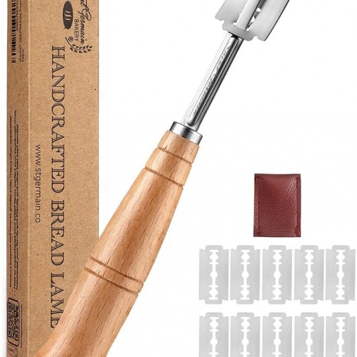 SAINT GERMAIN Premium Hand Crafted Bread Lame for Dough Scoring Knife, Tool Sourdough Slashing with 10 Blades Included Replacement Authentic Leather Protector Cover