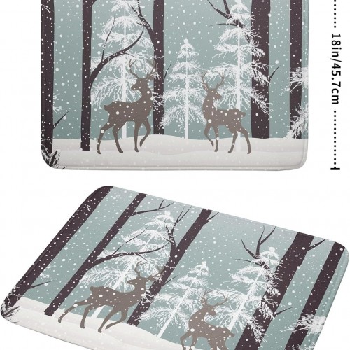 Winter Wildlife Deer Dish Drying Mat for Kitchen Counter,Xmas Landscape Snow Tree Ivory Drying Mat 18 x 24 Inch with High Absorbent Microfiber Drainer Mat for Coffee Bar