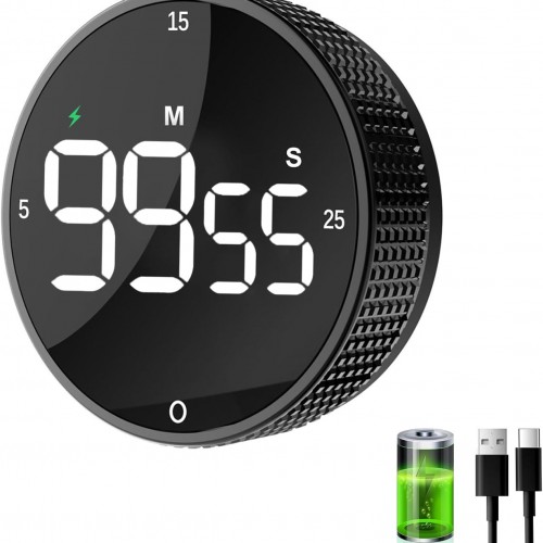 Rechargeable Magnetic Kitchen Timer-Loud Alarm Visual Productivity Timer&Pomodoro Timer with Large LED Display,3 Presets(5/15/25min),3 Volume Levels.Ideal for Cooking Fitness&Office Use(Blk)
