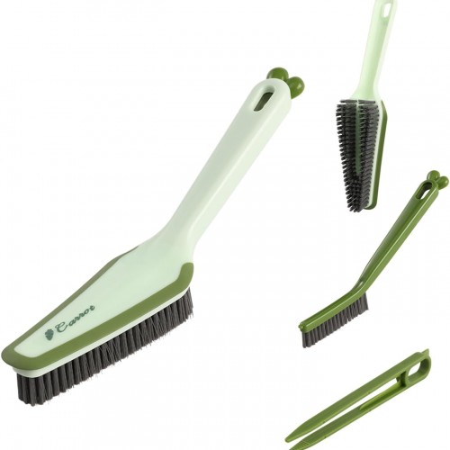 3 in 1 Detachable Household Cleaning Brush, Multifunctional Scrub Brush with Hard Bristle and Handle, Ideal Crevice Grout Scrubber Cleaner for Kitchen, Bathroom, Window, Shoes (Green)