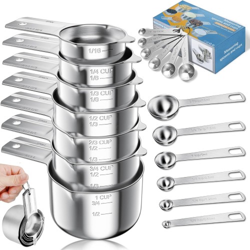 Vakoo 13-Piece Stainless Steel Measuring Cups and Spoons Set – Stackable & Nesting, U.S./Metric Dual Markings, Dishwasher Safe, Kitchen Gadgets for Baking & Cooking