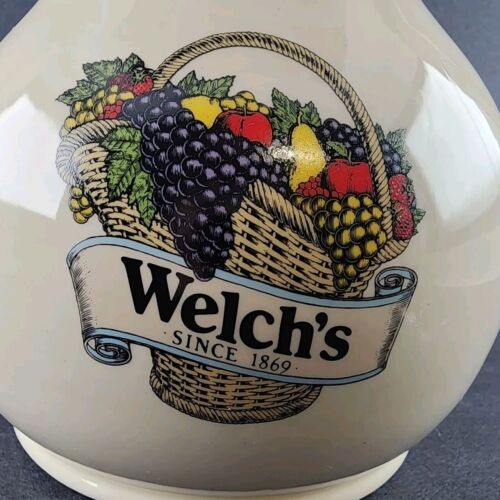 Welch’s 64 Oz Pitcher No 7554 USA Vintage Pottery Farmhouse Beige Wide Body EUC