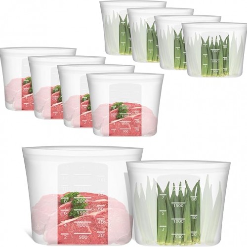 - 【ZIP LOCK & LEAKPROOF】With a strong zip-lock closure, these silicone bags for food storage open and close easily—no more missing pesky lids! The airtight secure seal keeps meat or liquids safely inside, making the bags perfect for sous vide. Plus, the oversized silicone zipper doubles as a convenient handle when moving bags into the fridge