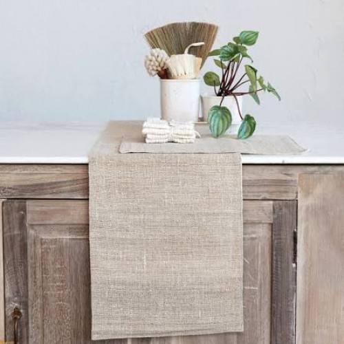 108″L x 14″W Linen Blend Table Runner w/ Frayed Edges, Charcoal Color