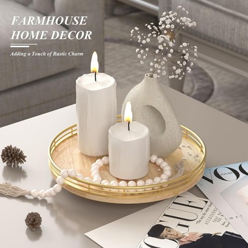12″ Lazy Susan Oak Wood Turntable Organizer for Cabinet, Farmhouse Round Wooden Lazy Susan Organization and Storage for Dining Table, Pantry, Kitchen, Bathroom, Countertop, Cupboard, Home Decor