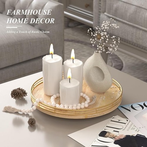 - PREMIUM MATERIAL: Our farmhouse lazy Susan organizer is made of natural solid oak wood and strong metal, sturdy, durable and premium quality. This wooden turntable organizer is a game-changer for keeping your kitchen organized. The farmhouse oak finish gives it a rustic, charming look that will fit perfectly with your kitchen decor.