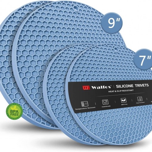 2 Pack 8.6″x8.6″ Trivets for Hot Dishes, Hot Pads for Kitchen, Silicone Trivets for Hot Pots and Pans, Hot Plates to Protect Table, Heat Resistant Silicone Trivet Grey (Blue, 8.6″x8.6″)