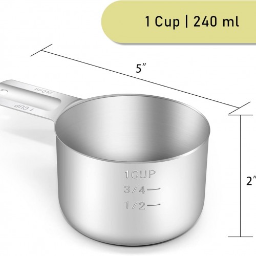 2PCS 1Cup (240ml, 8oz) Single Measuring Cup, Stainless Steel Measure Scoop, Metric and US Measurement, Dishwasher Safe