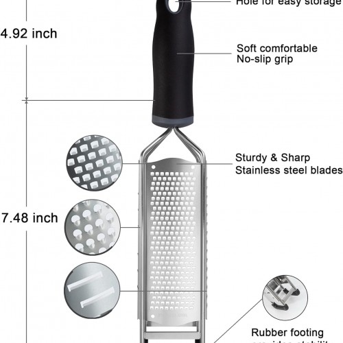 3 in 1 Cheese Grater Zester Citrus Lemon 304 Stainless Steel Zester Versatile Sharp Tool for Parmesan Cheese Ginger Garlic Nutmeg Chocolate Vegetables Fruits 12”