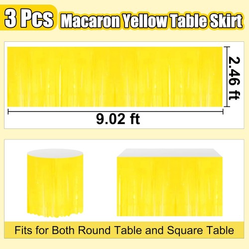 3 Pack 29 x108 Inch Macaron Yellow Foil Fringe Table Skirts Metallic Banner for Tinsel Streamer Garland Backdrop for Parade Floats Wedding Thanksgiving Birthday Christmas New Year Party Decoration