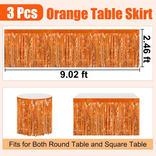 3 Pack 29 x108 Inch Orange Foil Fringe Table Skirts Metallic Banner for Tinsel Streamer Garland Backdrop for Parade Floats Wedding Thanksgiving Birthday Christmas Halloween New Year Party Decoration