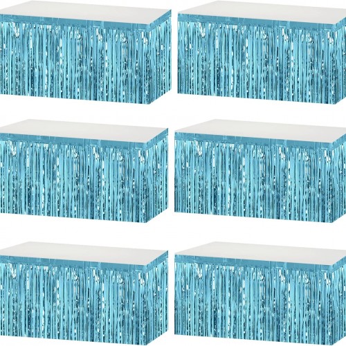 6 Pack 29×108 Inch Metallic Foil Fringe Tinsel Table Skirts Banner for Rectangle Tables Streamer Garland Backdrop for Wedding, Birthday, Parade Floats, Halloween Party Decoration(Light Blue)